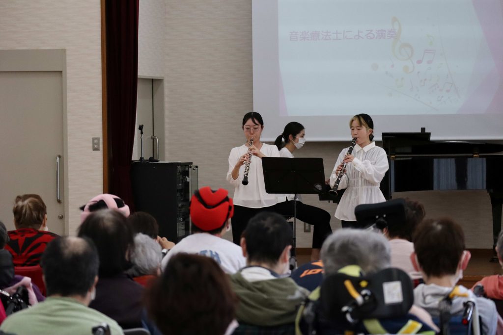 音楽療法士は、フルート・クラリネット・オーボエ・ピアノを披露させて頂き、色々な楽器の音色をお楽しみいただきました。