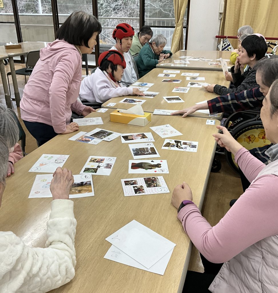 食事の後には、利用者の皆さんと職員をモチーフにした「オリジナルかるた大会」を開催しました。