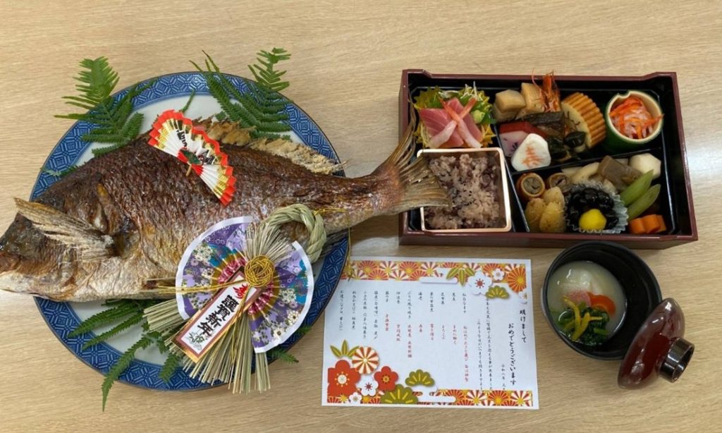 「おせち料理おいしいね」「鯛もすごく立派だね」と、沢山の喜びの声が聞かれ、食堂は笑顔でいっぱいになりました。